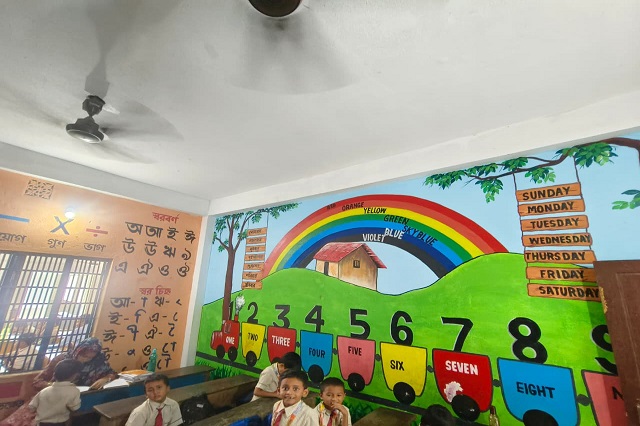 Highlights interactive digital classrooms and modern educational technology tools for enhanced learning.